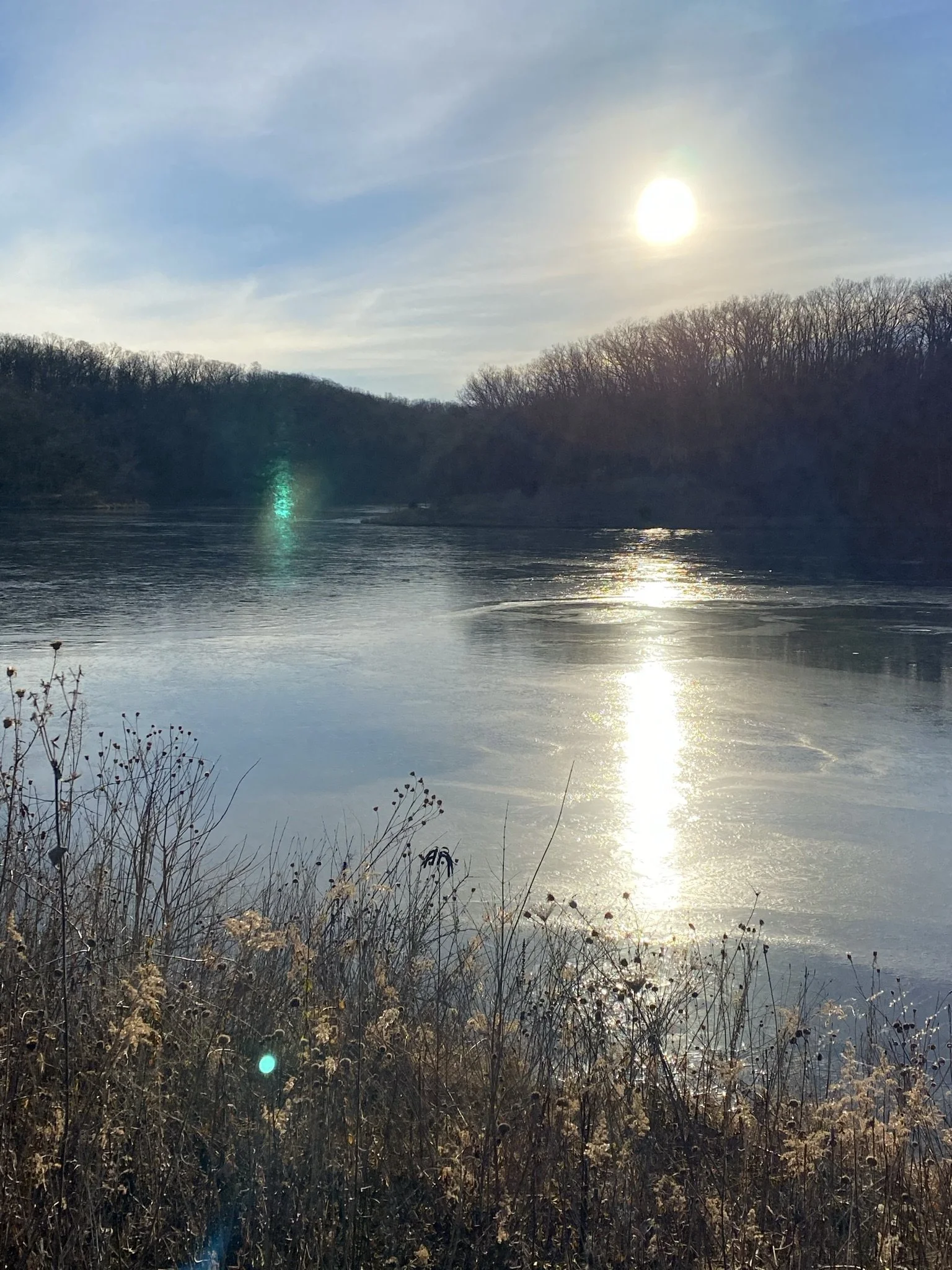 We went hiking at Cuivre River State Park and some of the water was frozen over. It was really pretty.
