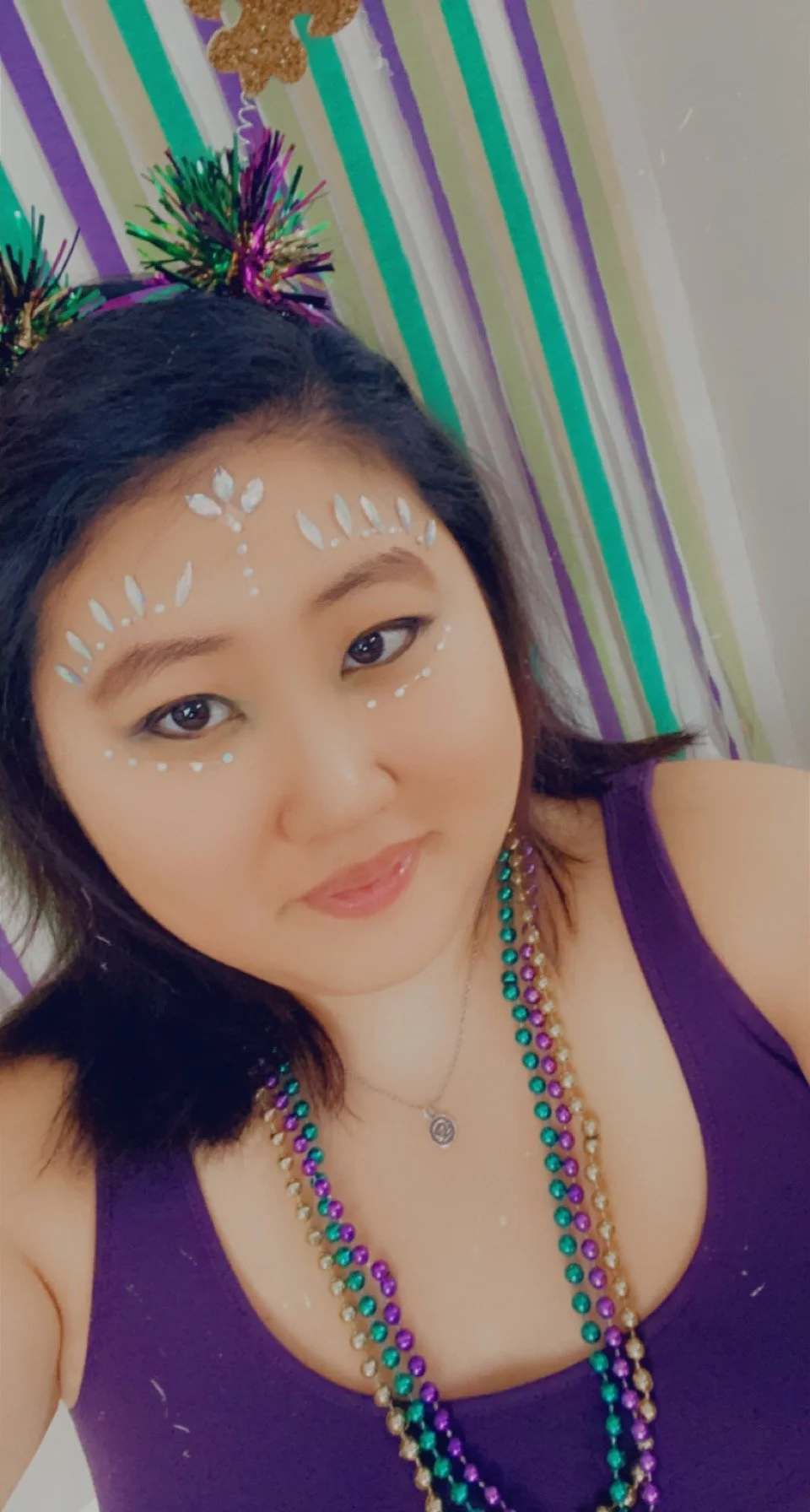 My friend had a Mardi Gras party, so I helped decorate her place and then dressed up in Mardi Gras attire.