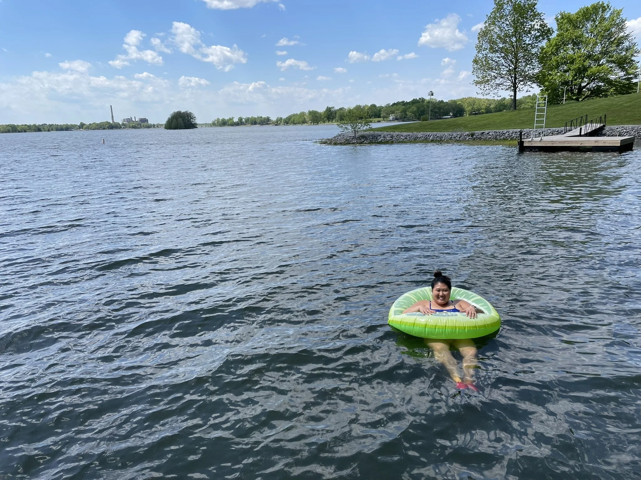 We took a weekend trip to a lake house on the Lake of Egypt in southern Illinois. We swam off the private dock the day that we arrived.
