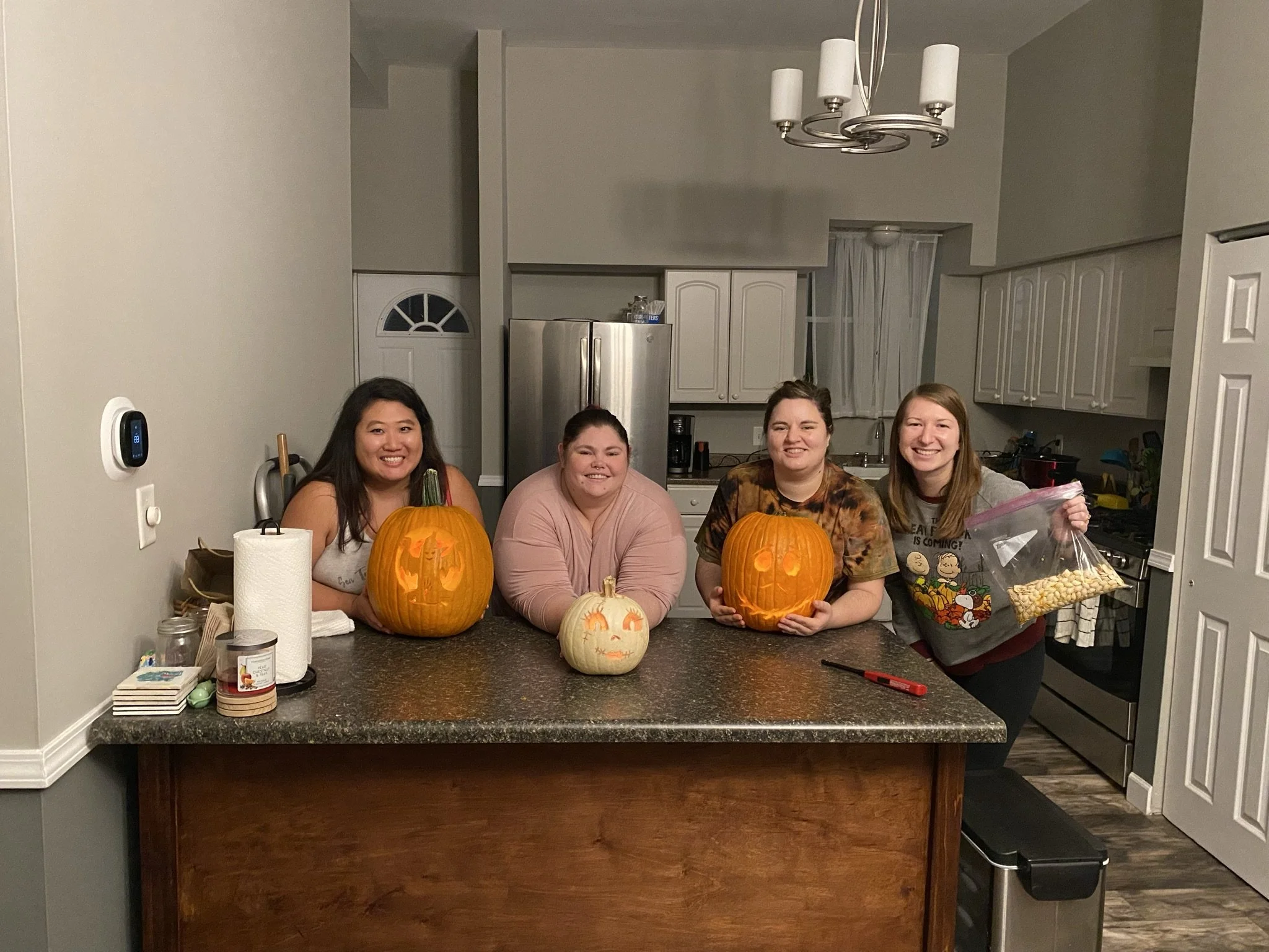 I had some friends over to carve pumpkins. I think they all turned out really cute.