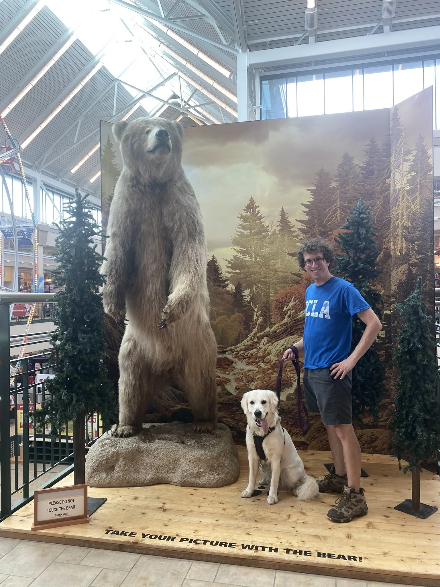 Bryce and Nico found a bear! We were near Scheels Sporting Goods with our friends. Their dog, Auggie, was dock diving and we went out to support him.