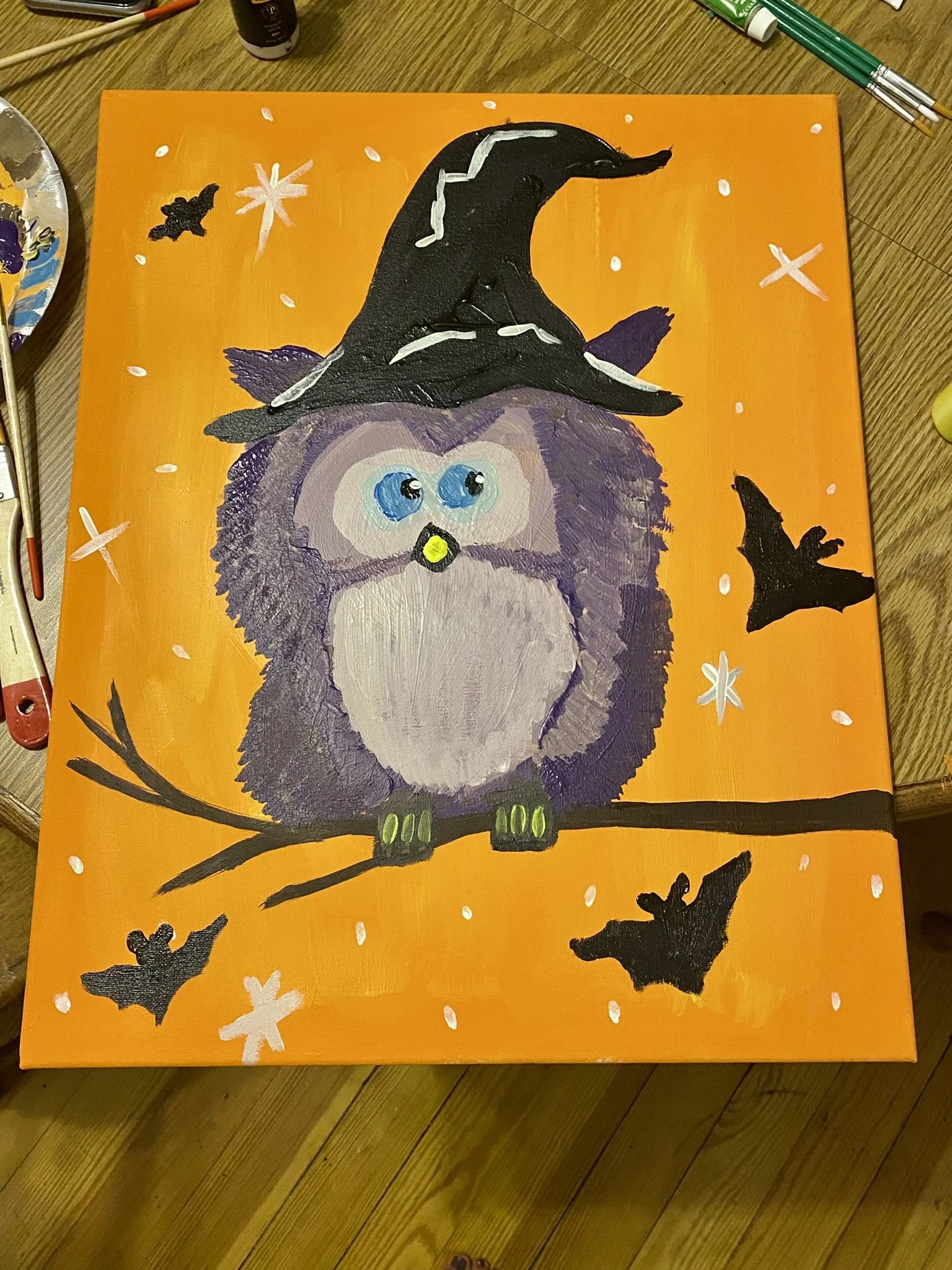 To get ready for the Halloween Season, I painted a cute picture during a fun girls’ craft night.