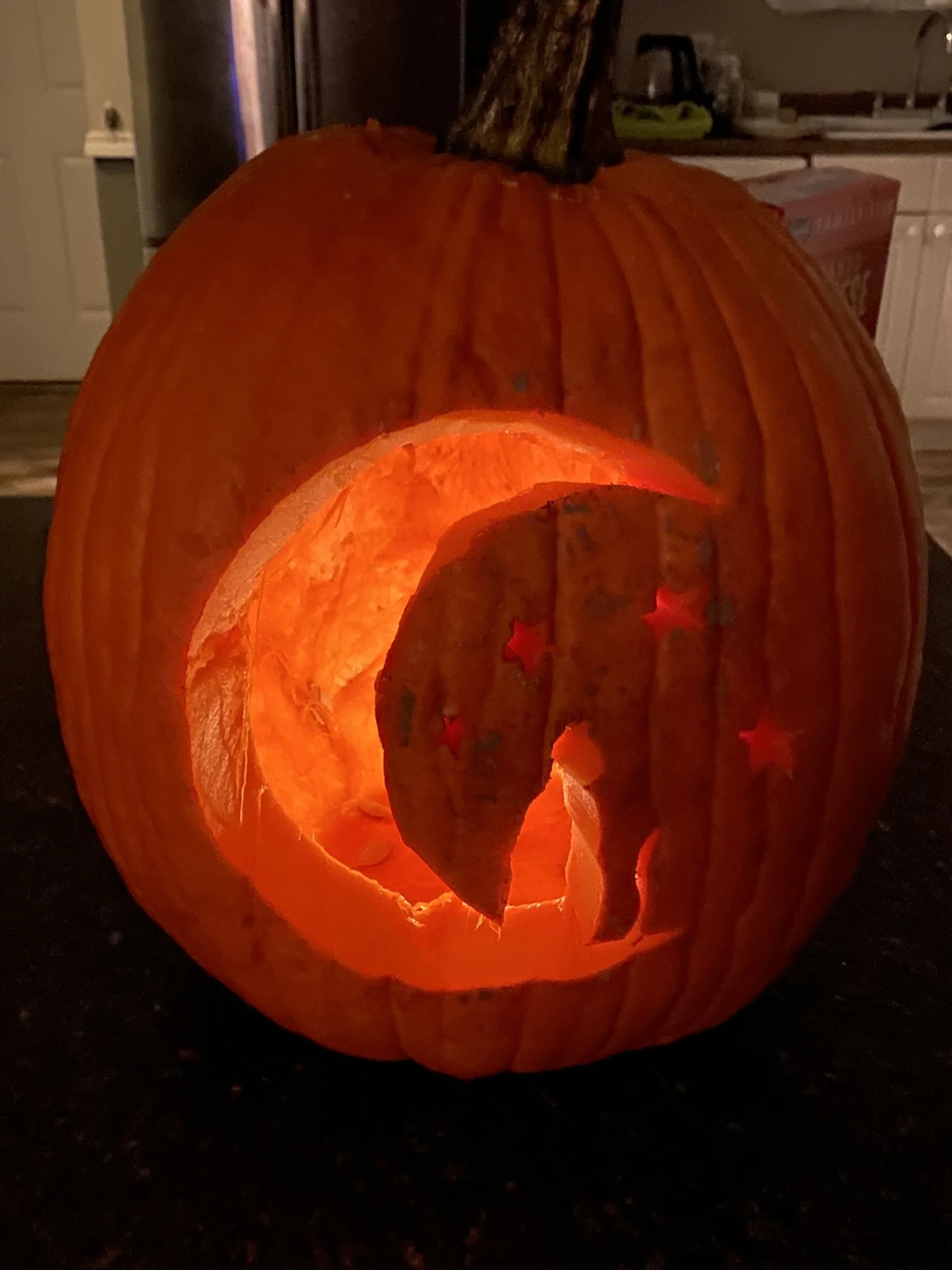This year, I carved a cat and a moon into my pumpkin.