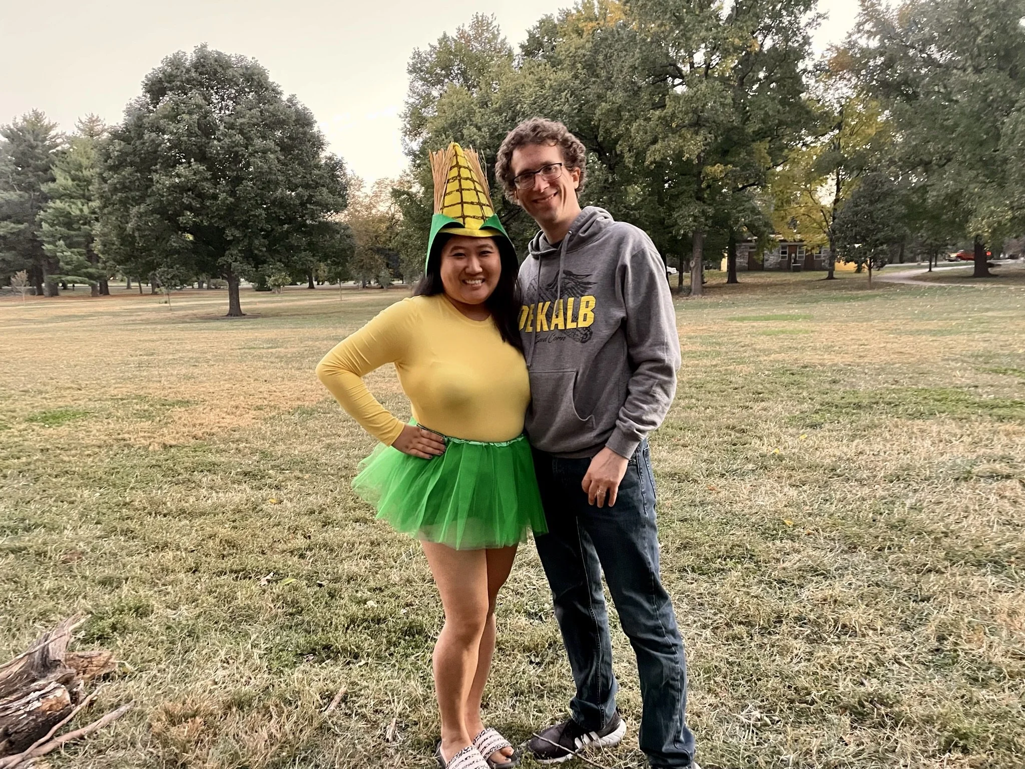 Bryce and I dressed up again. He wore his Dekalb hoodie and I was corn.
