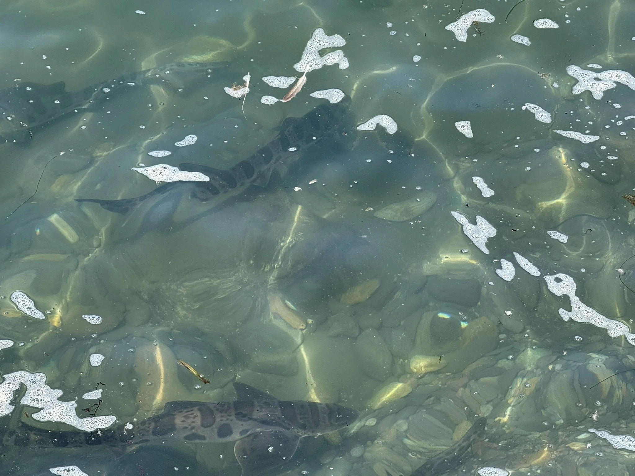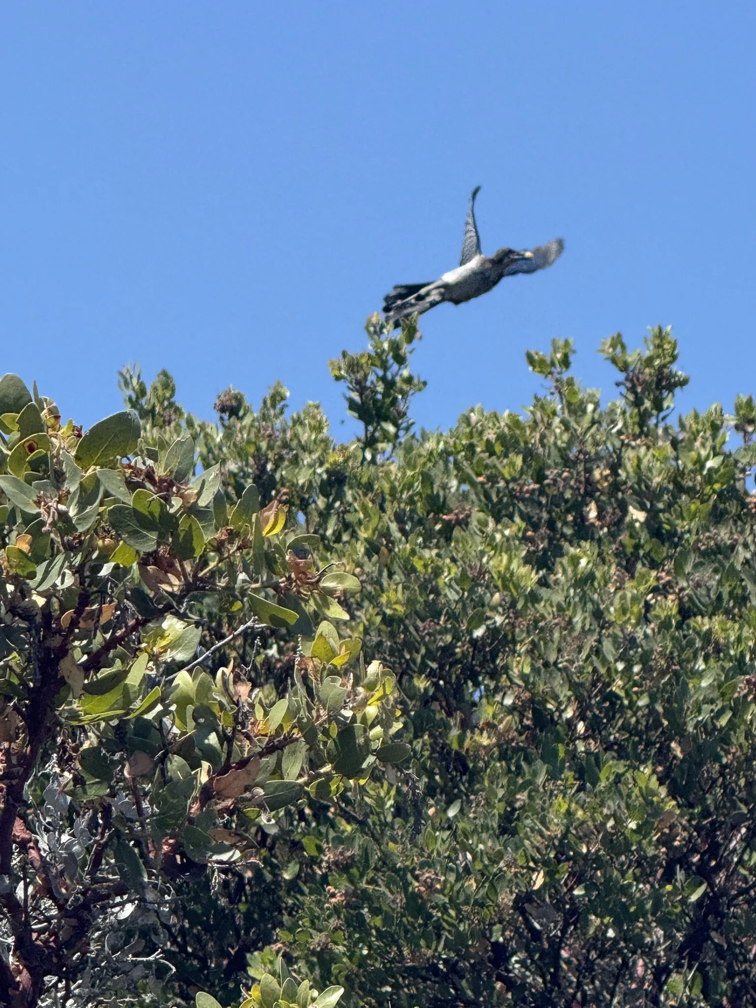 On Santa Cruz, we opted to hike the Pelican Bay trail, a 4.3 mile out and back trail. It’s actually through the Nature Conservancy so we had to sign a waiver since we would no longer be on the Channel Islands National Park property. Bryce and I didn’t walk to the end of the trail as we ran out of water and wanted to make sure we could get back on time for the ferry. We were able to make it just over 3.5 miles on 2 liters of water though, and still got to see some amazing views of the water and lots of wildlife and marine life on the island. We saw the Santa Cruz Island Scrub Jay, which is endemic to the island and is not found anywhere else. There is a related California Scrub Jay, but this one is found on mainland California coast. While waiting for the ferry at the end of our hike, we saw a sea lion swimming, some sting rays, and even multiple leopard sharks near the shore. These sharks prefer waters around 300 feet and we were easily able to see them as the waters were clear enough for us to see through.