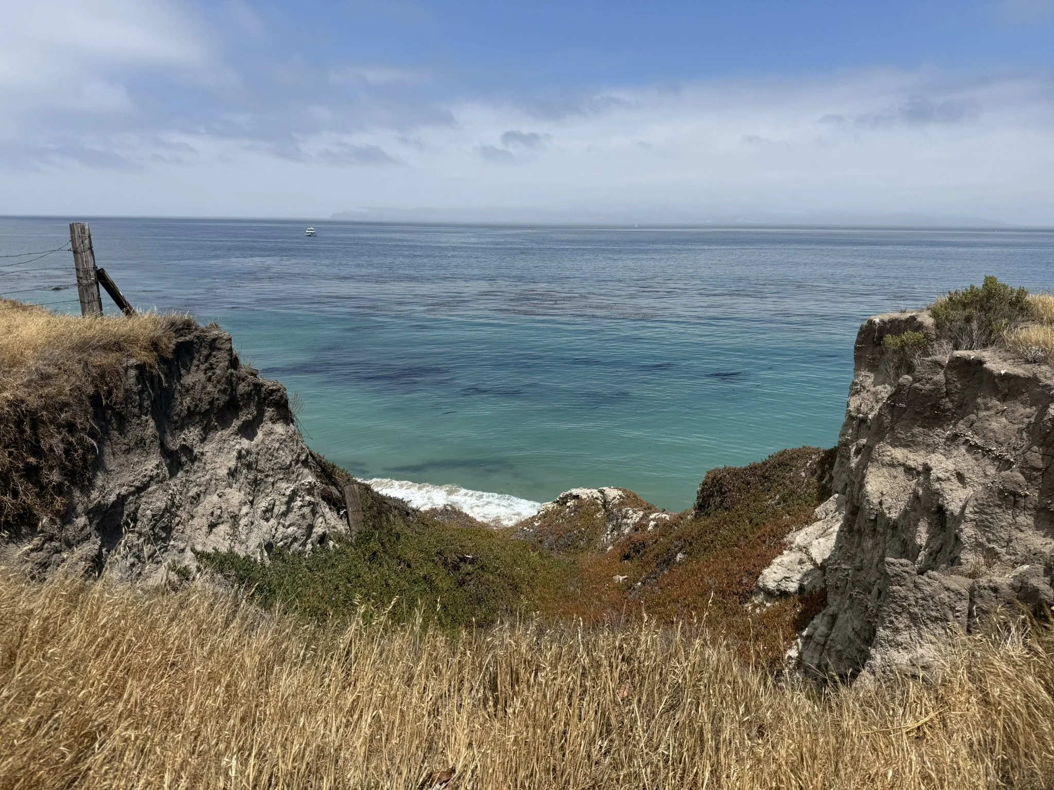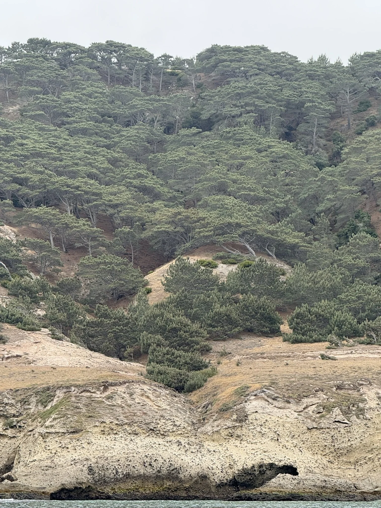 We got onto the ferry and got settled. Although we felt less sea sick outside and we also got to see some of the marine life. On our way to Santa Rosa, we saw some dolphins as well as a humpback whales and California gray whales. We were able to see it blow water out of its spout and saw the whale flip its tail before heading back under water. As the ferry approached the island, we got to see the water calm down as well as some Torrey pines. We were unable to hike the Torrey Pine trail since it was a difficult and long hike and we only had 3 hours before the next ferry came, but we got to see some from the ferry. These pine trees are a critically endangered species of pine, and the Pinus torreyana var insularis only grows on the Santa Rosa island.