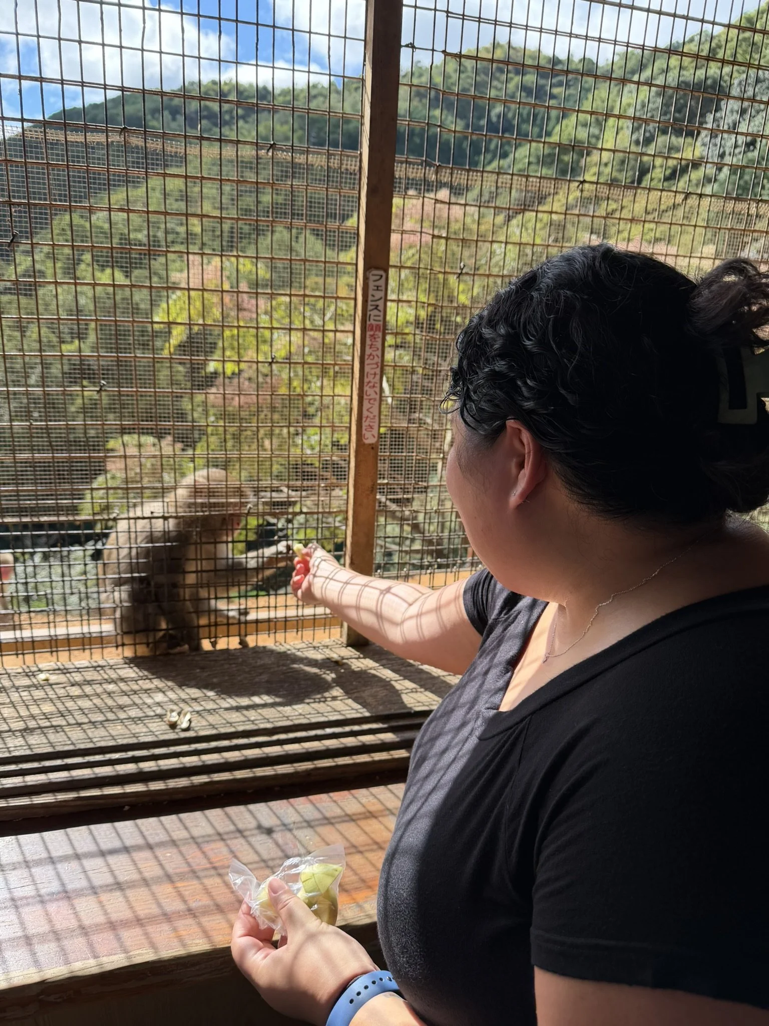 After the Temple, we walked to Arashiyama Monkey Park. It felt like we had to walk straight up a hill to get to the Monkey hut, but once we got there, we were able to feed the monkeys! We could only feed them inside the hut, but outside of the building, the monkeys could walk around and sometimes walked right in front of the people. The monkeys in the park are known as the “Japanese Monkey” (macaca fuscata) and the park is home to 120 monkeys. These monkeys have red faces and red buttocks and live to 30 years old.