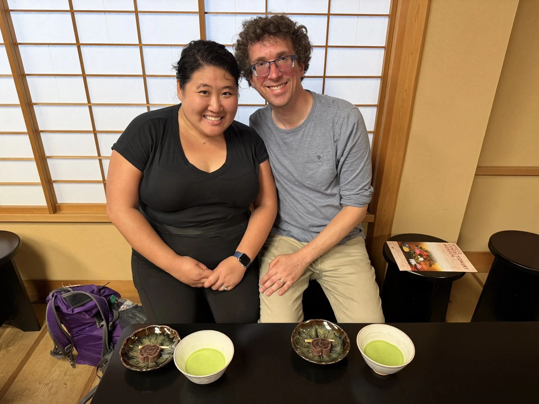 We all grabbed lunch together after the Castle. We wanted sushi but couldn’t find the restaurant. And we were so tired that we didn’t want to keep searching, so we stopped at a local dan dan restaurant. It was so good! I think it was one of our favorite meals in Japan for all of us. After lunch, we split off from Kyle and Danielle. We were leaving a day earlier and they wanted to see some other sites that would make us late for the train. Instead, Bryce and I went to a little museum off of the main path. We found the Kyoto Confectionery Museum. The second floor is the exhibition room, which was really small and prohibited cameras and pictures. Nonetheless, the displays of both “kasyoku” (the flambeau of blooms) and “Syunjyu” (spring and autumn) were very detailed and so beautiful. According to the museum, ornamental sugar-art confectionery is extremely artistic. Most of the ornamental sugar-art confectionery is made with Dainagon (red beans) and refined Japanese sugar known as “Wasanbon”. After, we were able to sit at the Ryureiseki “Shoun-ken” for a tea ceremony. However, since it was only us, we just ate some confectionery and drank a bowl of green tea. Bryce and I left shortly after we finished our confectionery treat and green tea. We rode the Hello Kitty train back to Osaka, checked into the airport, grabbed a quick dinner, and then we were off to Seoul!