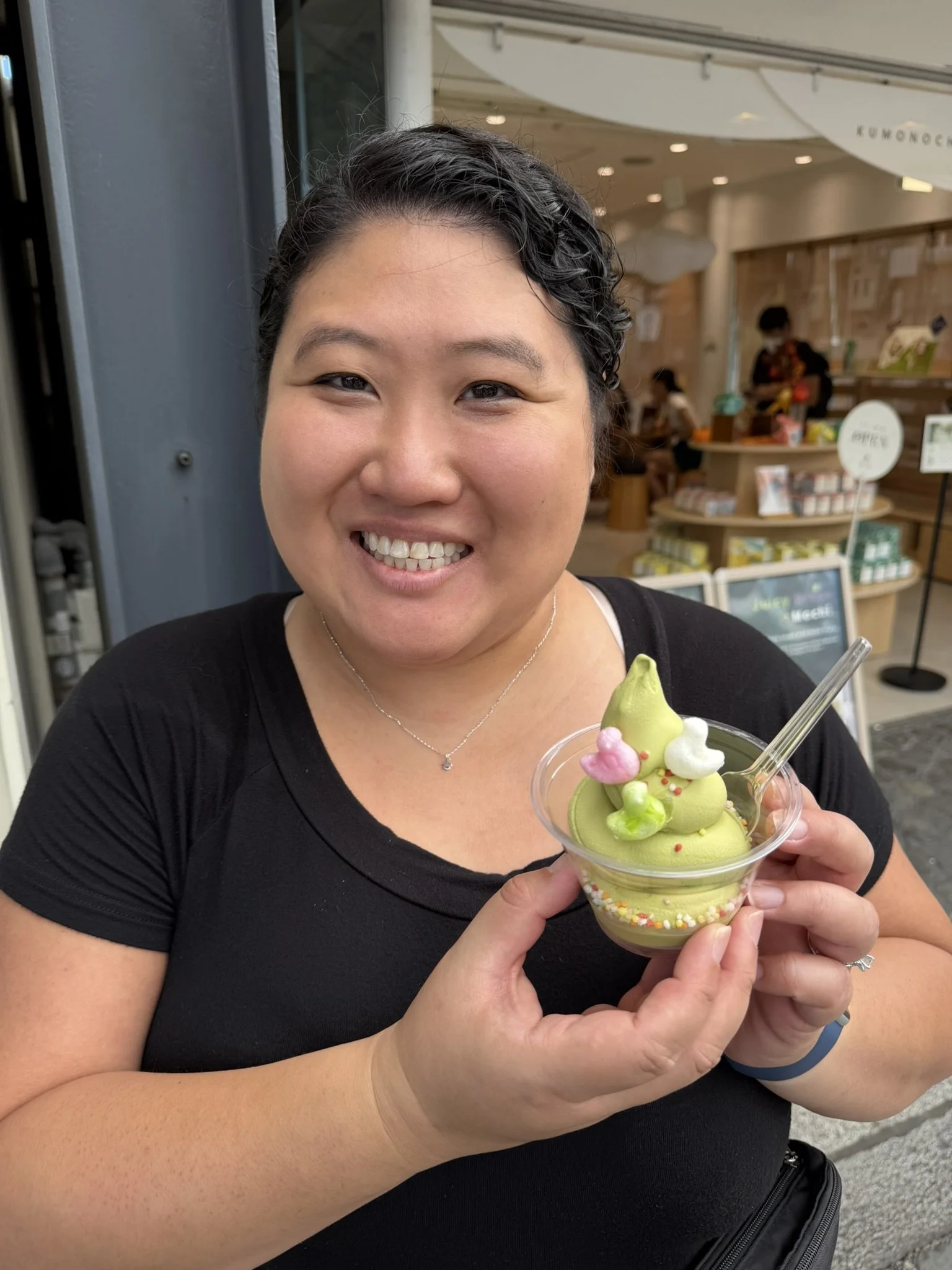 After our morning activities, we stopped for Ramen at Tenryu Ramen. I had the Tonkatsu Ramen with pork cutlet, bean sprouts, green onion, roasted pork fillet and bamboo shoots. Bryce had the Char Siu Ramen which had a roasted pork fillet, bean sprouts, green onion, seasoned boiled egg, and bamboo shoots. For a snack, we tried matcha ice cream. I’m not crazy about matcha and thought the ice cream would be a better version of matcha. It really wasn’t that much better, as it just tasted like sweet grass instead of unsweet grass. But the little rice ducks they added to the ice cream was fun. After lunch we walked around Arashiyama and did some shopping.