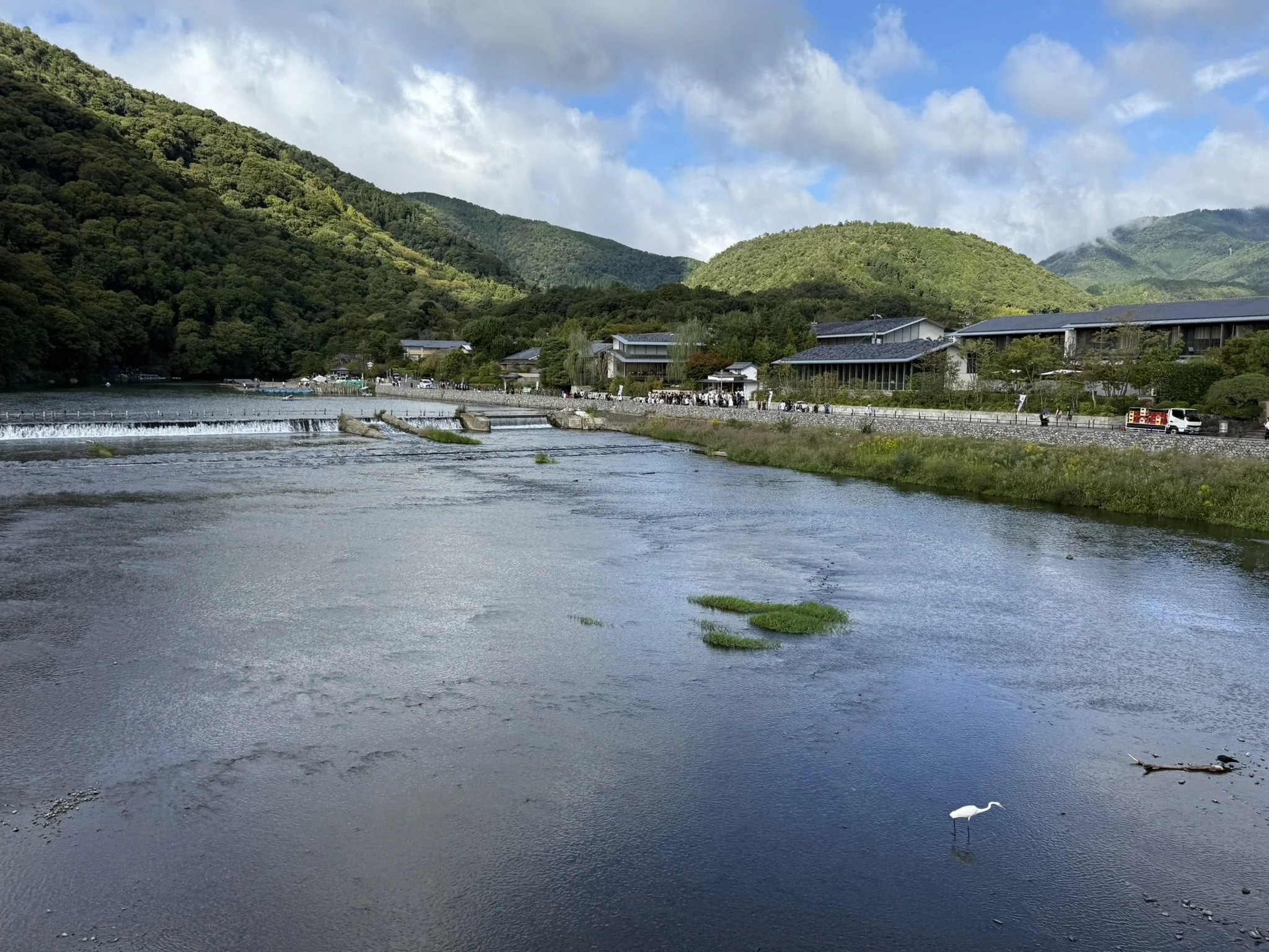 We also walked over the Togetsukyo Bridge, a 155 meter bridge that was really pretty. It was originally built in 836 but was reinforced with wood looking concrete in 1934. The bridge crosses the Katsura River which was not very deep when we crossed. We were able to see so many birds including the little egret, the great egret, a gray heron, and a blue crow (although there are a few different blue crows that can be found near this river so I’m not sure which one we saw).